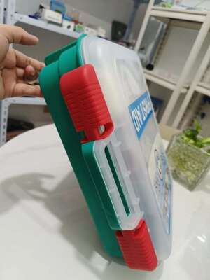 Twarda plastikowa obudowa: Doskonała wodoodporność i odporność na wilgoć. Idealna do stałego montażu na ścianach fabrycznych, w wilgotnych piwnicach lub bagażnikach samochodów. Sztywna obudowa zapobiega zgniataniu wewnętrznych pojemników na płyny (takich jak płyn do płukania oczu).